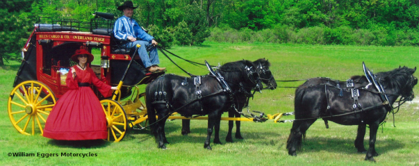 Cathy Eggers with 1865 Wells Fargo Stagecoach & Drive and Horses from CommerFord Zoo