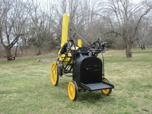 Known as a Steam Car of the Civil War Days, this is the first of three carriages made by Sylvester H. Roper in 1863. Coal-fired, the steam pressure was around 15 – 20 pounds. The carriage has no brakes. It is slowed down by the cutting of steam to the pistons, just like in locomotives.
